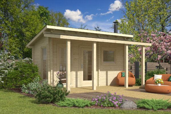 Seinäpaksuudeltaan tuotepiirustuksen mukaisesti 70 mm Pihatuuri-pihasauna sisältää: