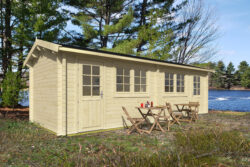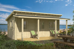 Hintaan sisältyy liimapuuovi ja lasi-ikkunat, ruostumattomasta teräksestä valmistettu kynnyspaketti, 28 mm lattia, kyllästetyt perustuspuut, kiinnitystarvikkeet ja asennusohjeet.