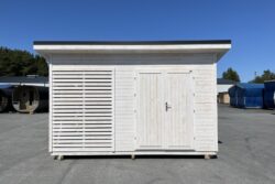 Varaston ja puuliiterin yhdistelmä pulpettikatolla.